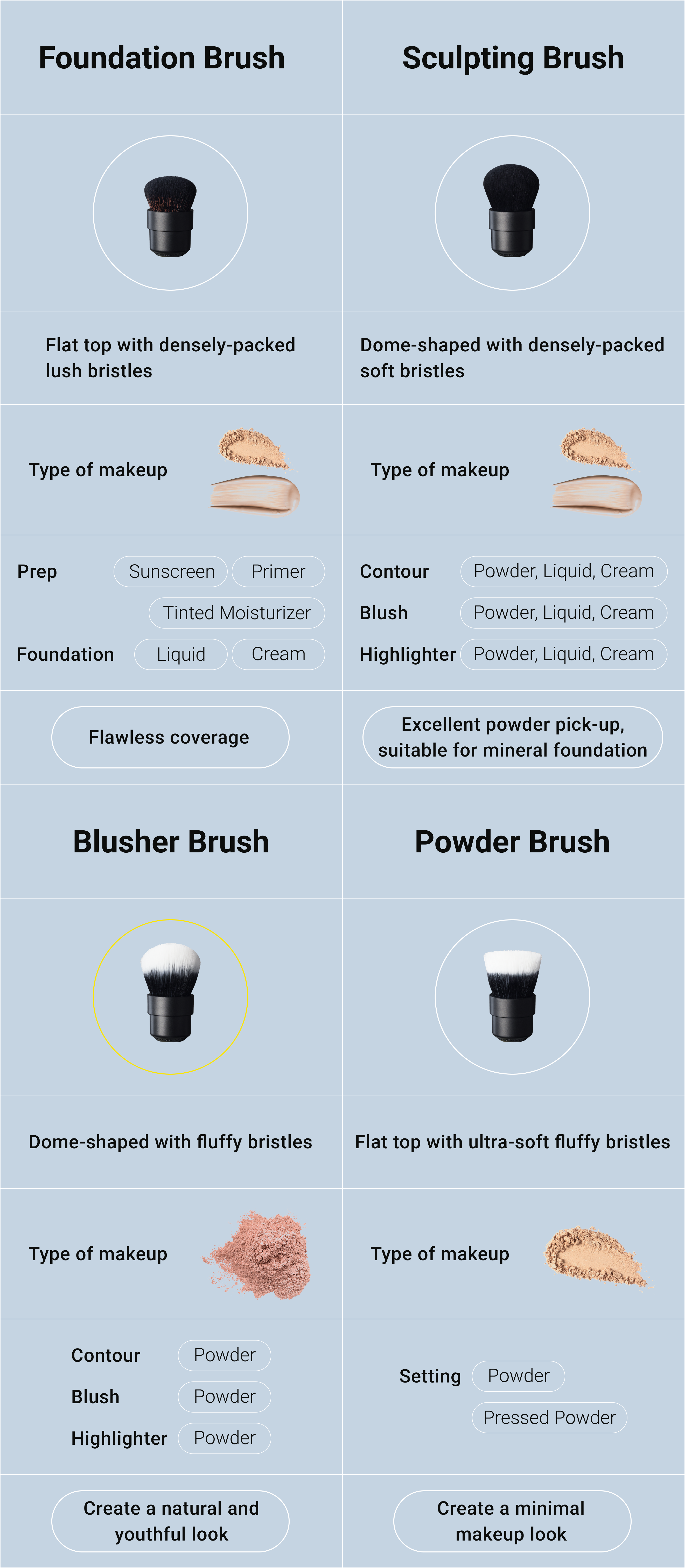 • Best used with powder blush, contour, and highlighter